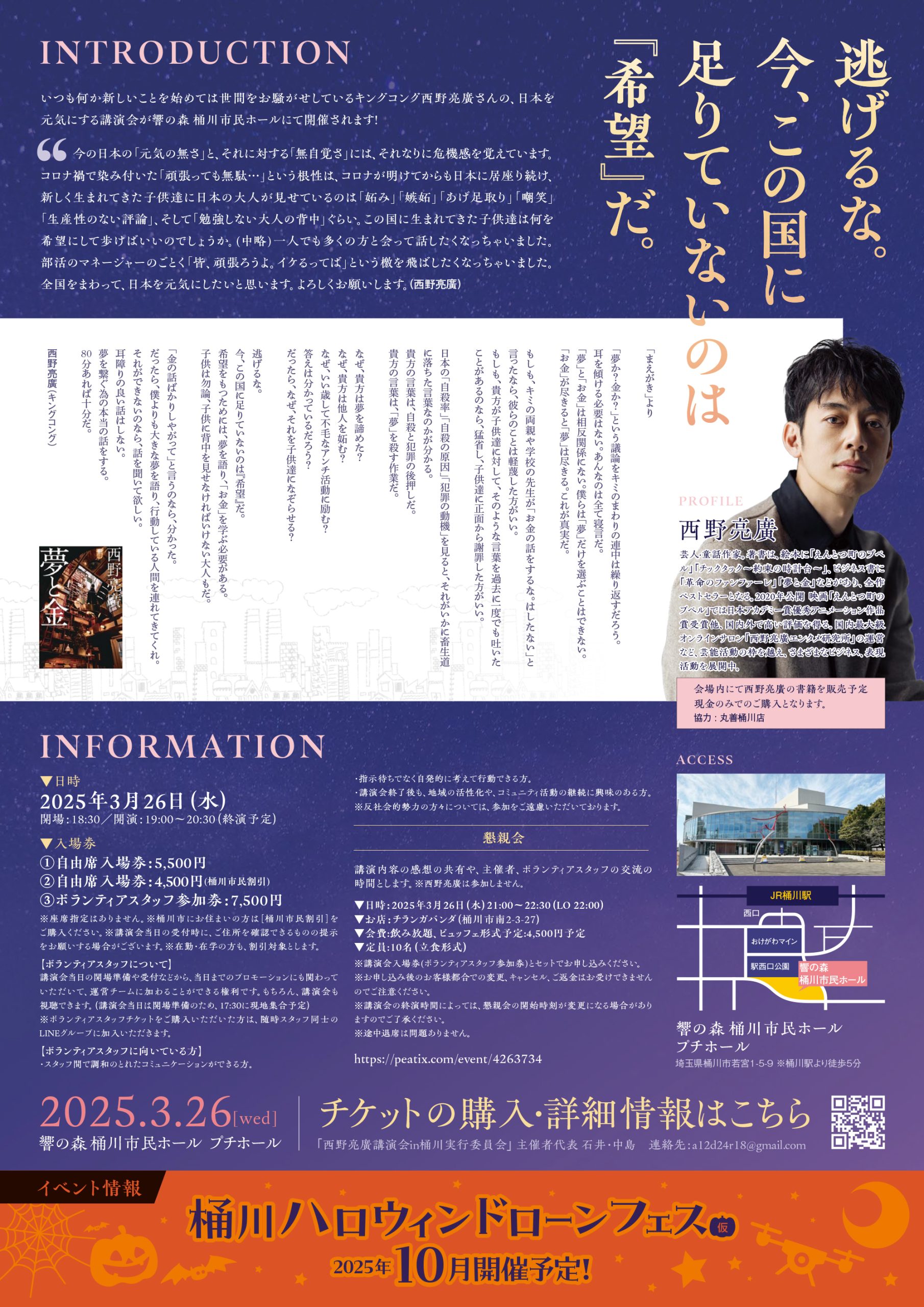 日本のエンタメをリードするキングコング西野亮廣さんが桶川で講演!